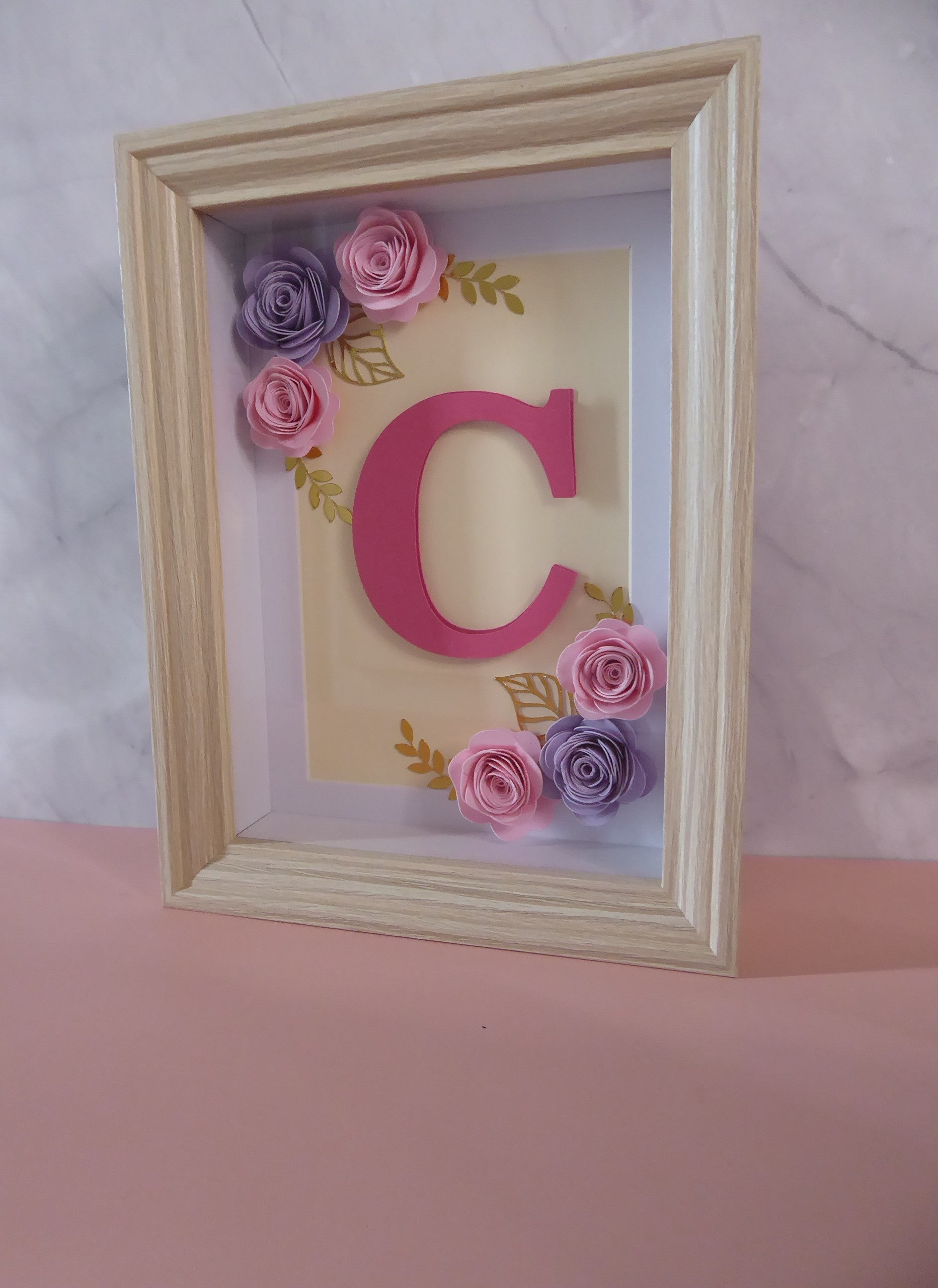 Cadre personnalisé avec initiale et fleurs en papier – Décoration artisanale fait main