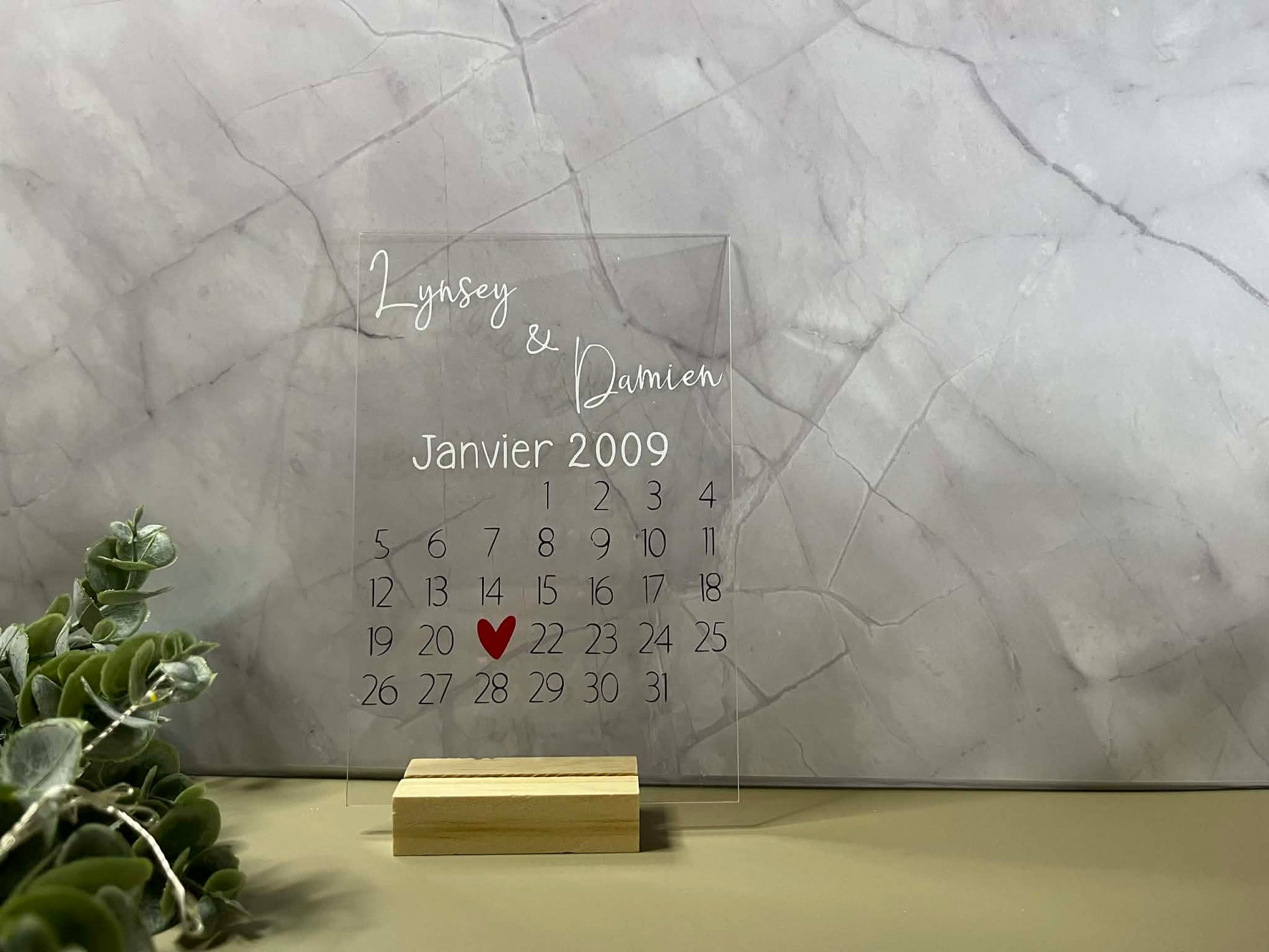 Offrez (ou offrez-vous !) une plaque en plexiglass personnalisée qui met à l’honneur la date qui a tout changé : votre rencontre, votre premier rendez-vous, votre demande… Chaque détail est personnalisable pour créer une pièce unique, à votre image.